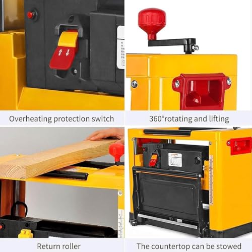 - 13-inch Desktop Planer:The 13-inch 530*700mm double-sided table is thickened to assist in smoother planing. The table can be stowed away for easy portability. The all-aluminum base of the machine body makes planing more stable and accurate Equipped with a return roller, it is convenient to return when planing long boards, saving time and effort