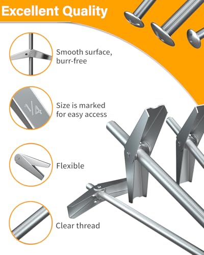 • Premium Quality:The toggle bolts and nuts in each size are constructed with new high-strength steel, which ensures outstanding strength and hardness. Finished with multi-layer galvanization, these drywall anchors and nuts are rustproof and corrosion resistant.