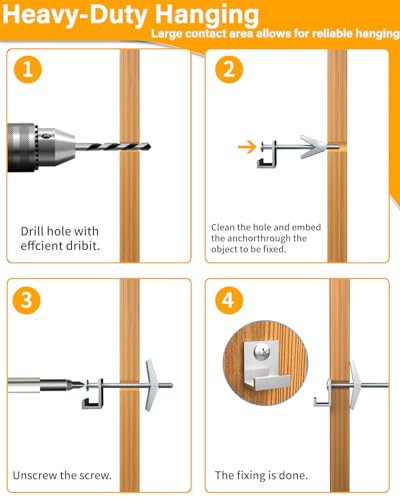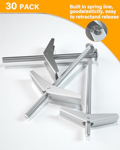 • For Heavy-Duty Hanging Tasks:The drywall anchors are designed with spreading butterfly wing nuts, when knocked in hollow walls the wings will automatically spread to increase the area of the thrust surface, which enhances the load bearing of the toggle bolts for heavy-duty hanging tasks.
