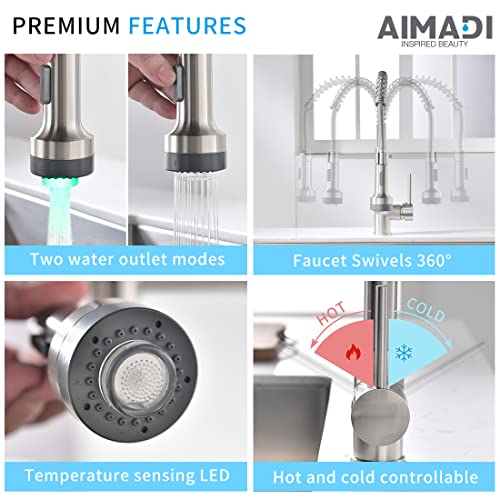 AIMADI Modern Kitchen Faucet Pull Down Sprayer,Stainless Steel Single Handle Kitchen Sink Faucet with LED Light,Brushed Nickel