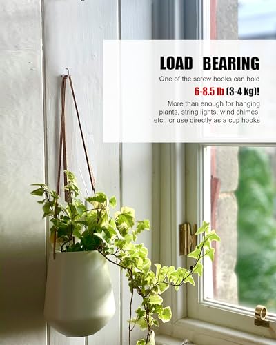 - LOAD BEARING : One of the screw hooks can hold 6-8.5lb (3-4 kg)! More than enough for hanging plants, string lights, wind chimes, etc., or use directly as a cup hooks