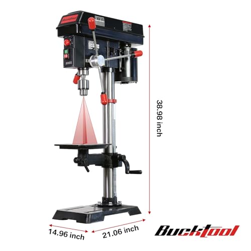 - EXTRA SUPPORT: This drill press equips with a Class IIIA 2.5mW laser, work light, emergency stop switch, and no voltage release switch, help you work precisely and safely