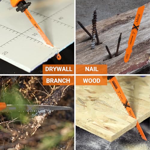 - [Multi-purpose]: This hand saw set includes blades with different specifications, suitable for cutting various materials including Wood, Drywall, Metal, Sheetrock, Plastic, making it convenient for home improvement, garden care, and everyday repair tasks.