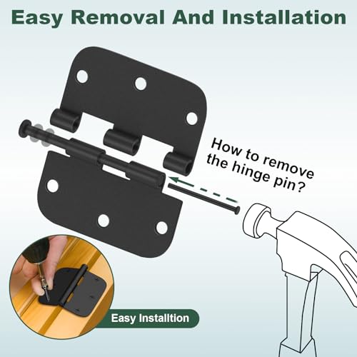 - 【Removable Pins】The center pin of door hinges can be removed. It can help you add hinges or oil hinges more easily, provides additional convenience. (Since we add a viscous lubricant around the pin, it can be a little difficult to remove the pin)