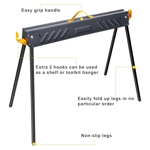 • Seconds Set-Up: Our metal sawhorses come fully assembled, no installation is required, simply unfold the legs and lock into place, then you can start working anywhere without bending over.