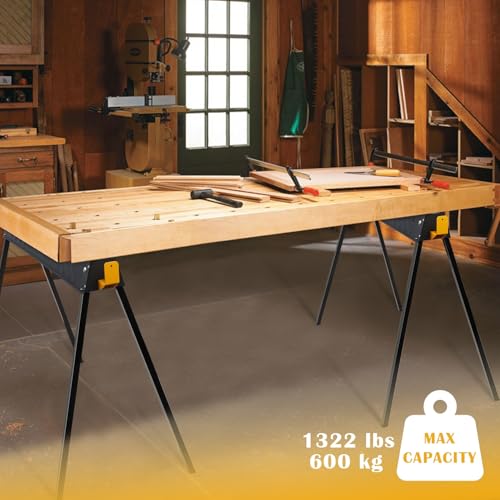 • Stable Structure: Our sawhorse stand with non-slip treatment of the top work surface and legs for enhanced stability, makes it a ideal choice when you need a stable and solid support for your sawing work.