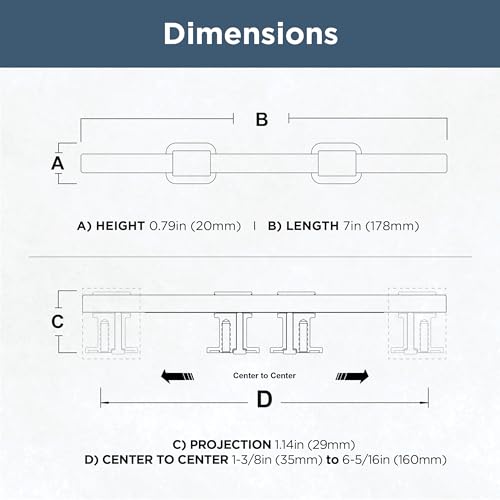 - SIZING: The collection of drawer pulls measures 1-3/8"-6-5/16" (35mm/160mm)center-to-center and comes in a pack of 5.