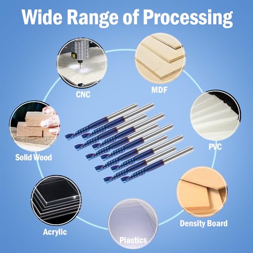- Perfect cutting —- the design of flute, larger spiral chip space and mirror polishing of CNC Router Bit makes non-stick crumbs, smooth cutting and fast chip-removal