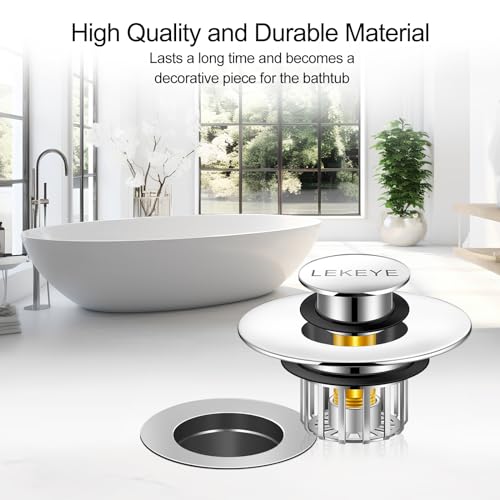 - ·Universal Fit: Designed to fit most bathtub drain holes, the LEKEYE bathtub stopper is suitable for drain holes with a diameter between 1-1/2 to 1-3/4"" and a minimum drain-hole depth of 1"". Please measure the drain before purchasing.