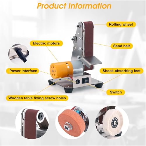- 【Mini Belt Sander for Knife Making】: Mornajina Mini Belt Sander is made of heavy-duty stainless steel, very durable and strong , resistant to rust, wear, and tear. It ensures a long service life. It has four shock-absorbing rubber pads on the bottom to suppress vibrations and add stability. This machine features a stable motor with high speed and high torque, while maintaining low noise levels.