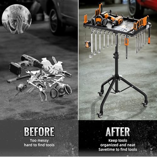 - HEIGHT ADJUSTABLE – Rolling tool cart is adjustable in height from 24-37 inch to accommodate different work requirements, the tool tray is 42cm long by 30.5cm wide, work table tray center load capacity up to 50 lbs