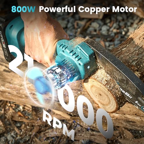 - 【ONE HAND USE CHAINSAW】Our lightweight battery chainsaw, just 2.62 lbs, is perfect for one-handed use without fatigue. Easy for beginners, its cordless design ensures portability in small spaces