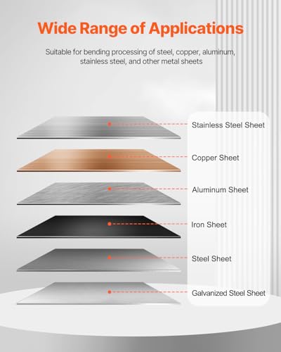 - Versatile Application: Designed specifically for sheet metal bending, this box and pan brake efficiently handles a wide range of metals, including stainless steel, copper, aluminum, iron, galvanized steel, and more. Its sturdy construction makes it ideal for professional production environments, as well as factories, workshops, home shops, and personal use