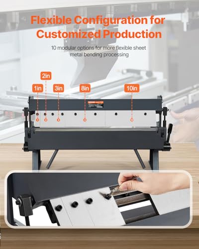 - Modular Segments: With 10 modular components (2 x 1-inch, 4 x 2-inch, 2 x 3-inch, 2 x 4-inch), this sheet metal brake easily handles complex sheet metal tasks like floor reinforcement channels, truck bed floors, cab front panels, and mudguards