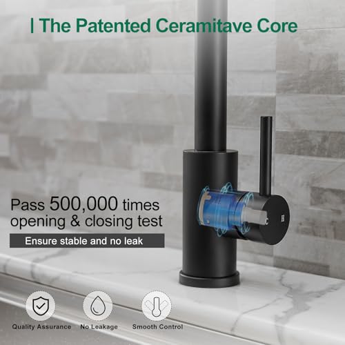 - The stylish spring faucet design is suitable for kitchen sinks or granite countertops.Quick Connect hose can help you install by yourself with 15mins, deck plate can fit 1 hole and 3 hole kitchen sink.
