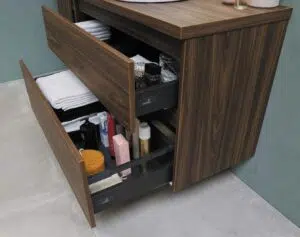 - Drawers instead of a shelf: Use standard drawer slides (450–500 mm length), and build drawer boxes to fit the internal width (opening width minus slide clearances, typically 25 mm total for side-mount slides).